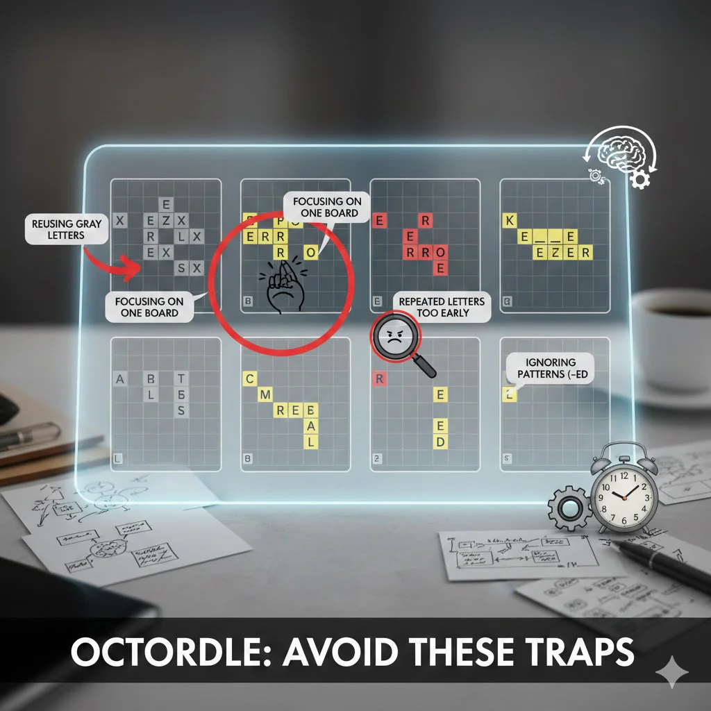 Many players rush and repeat errors. One mistake is reusing letters that are already gray. That wastes guesses. Another is focusing on one board too long. Remember, you must solve eight words. Spread your attention across boards. A third error is guessing words with repeated letters too early. Repeats hide other letters. Finally, avoid ignoring simple patterns like common suffixes. Look for endings like -ED or -ER. Slow down, read the feedback, and plan your next guess. Avoiding these slips raises your win rate fast.