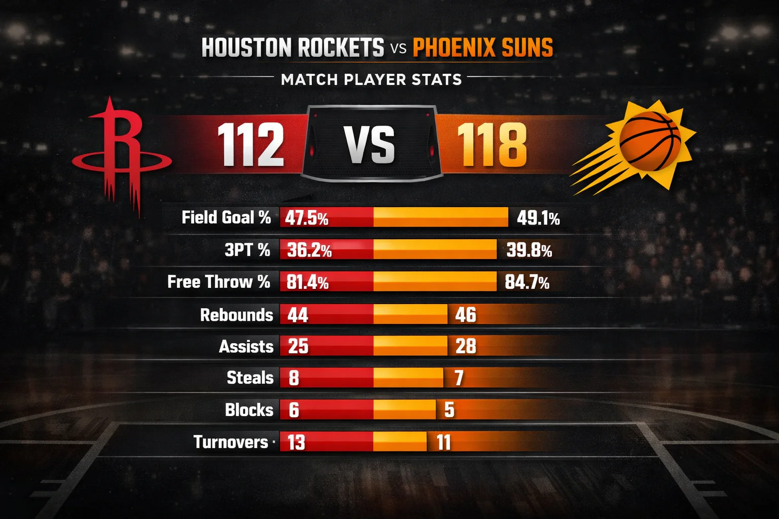 Houston Rockets vs Phoenix Suns Match Player Stats